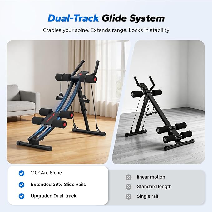 Strength & Stability Combined: Constructed with premium commercial-grade steel and a triangular dual-track frame, it supports up to 330 lbs, delivering superior stability and safety compared to single-track machines. The perfect abs machine for home workouts, offering both strength and stability.