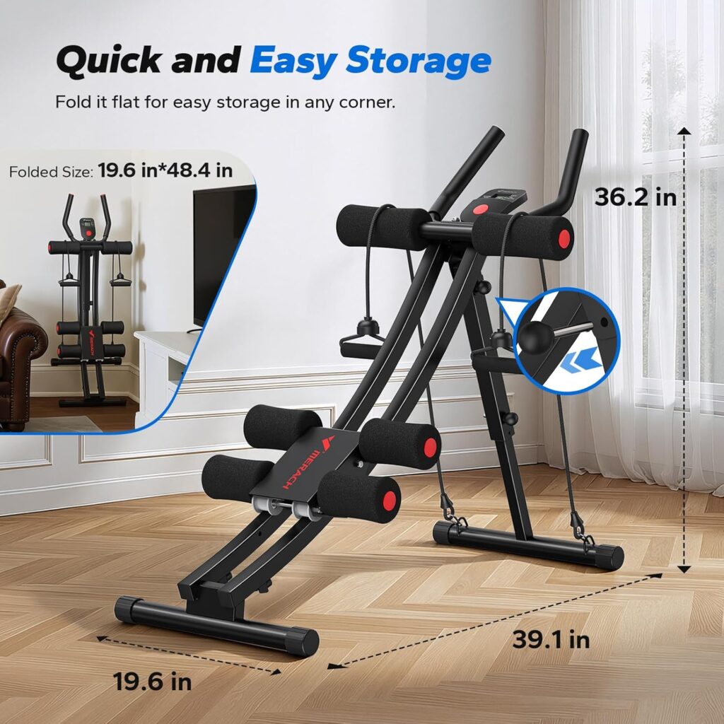 Real-Time Workout Feedback: Keep track of your exercise data with the built-in LCD screen, showing reps, time, and calories burned, so you can stay on target with your fitness goals. The ideal abs machines for home women looking for a compact and efficient workout solution.