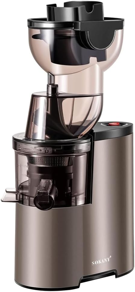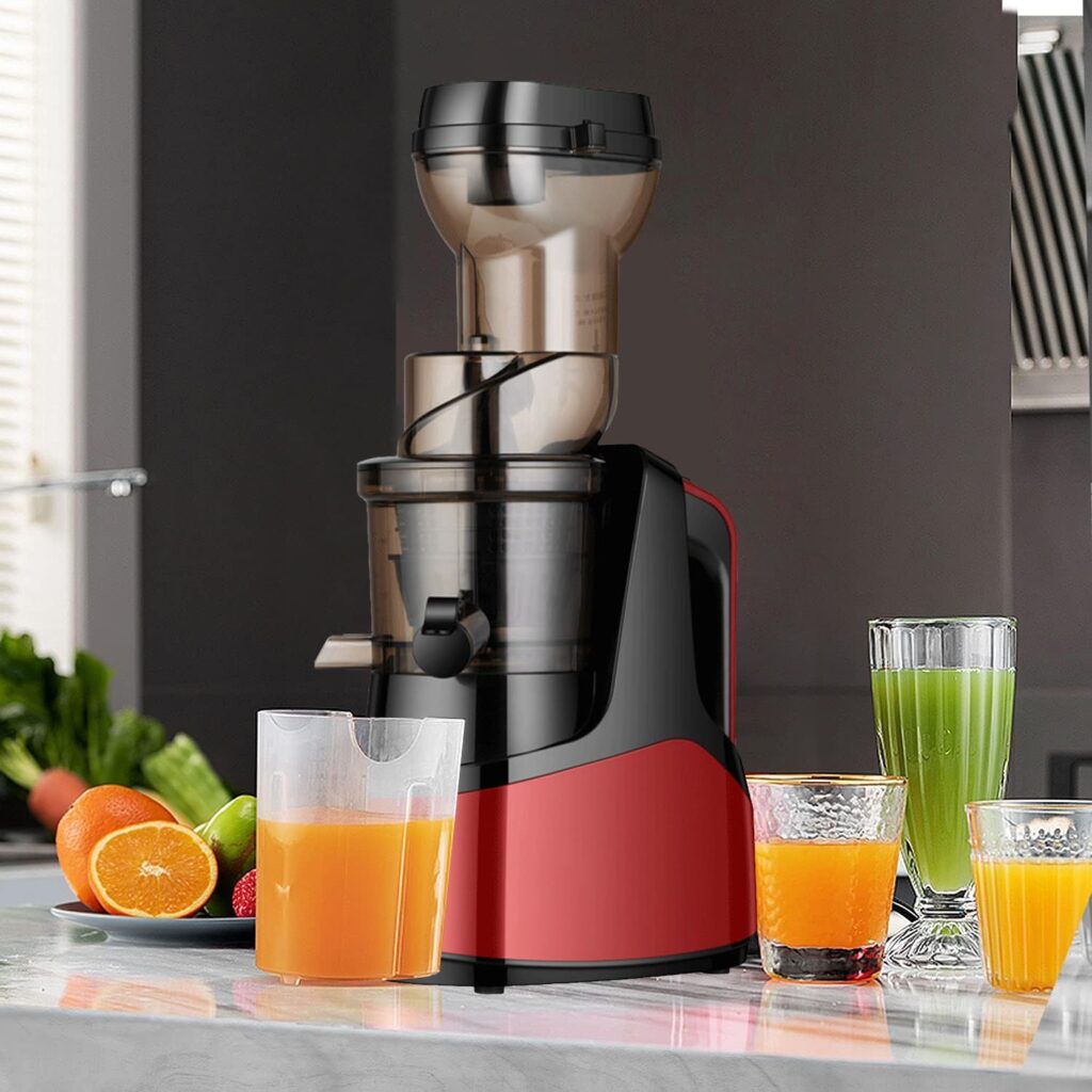 The cold press juicer has a 800 Watts powerful quiet AC motor makes juicing more efficient.Equipped with 3″ feed chute for juicing whole fruit, juice extractor easily accepts large pieces of fruits and vegetable, save time for cutting and preparing ingredients.