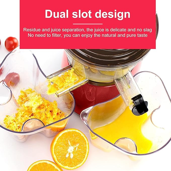 Dual chute design, the separates pulp from juice automatically and extract them into 2 different containers makes it very convenient to use.